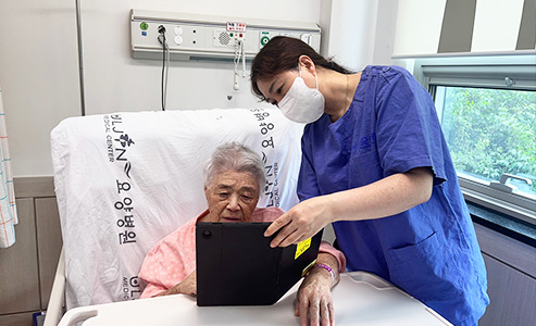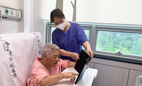 울진군의료원 요양병원에서는 병문안을 못하는 입원환자와 가족을 위하여 아이패드를 이용한 영상통화서비스를 실시하고 있습니다.영상통화는 선 예약제로 실시하고 있어 먼저 예약하신분이 먼저 진행하고 그 다음 순차적으로 진행됩니다.